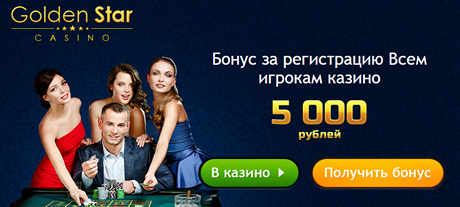 Отличие Golden Star от других casino – первый приветственный бонус вы можете получить еще ДО того, как пополните депозит. Сумма – до 5000 рублей. Это не отменяет Приветственный бонус, который вам полагается при внесении денег на игровой счет. Он составляет 100% к вашему пополнению. Лимита на бонус нет. Эти бонусы обязательны к отыгрыванию с вейджером *25. Вполне лояльно.